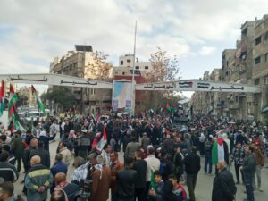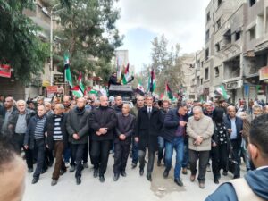 المسار :شاركت الجبهة الديمقراطية لتحرير فلسطين، في المسيرة الجماهرية الحاشدة، التي دعت لها فصائل منظمة التحرير الفلسطينية والمؤسسات والفعاليات الاجتماعية في دمشق، في مخيم اليرموك إحياءً للذكرى السنوية لانتصار الثورة السورية، وتأكيداً على الموقف الوطني الثابت في دعم الشعب السوري وحقه في الحرية والعدالة.