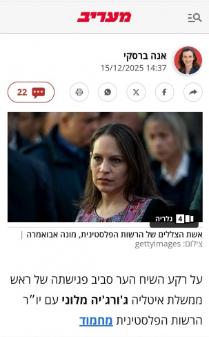 هكذا تقدّم الصحفية الإسرائيلية آنا برسكي صورة السفيرة الفلسطينية لدى إيطاليا، منى أبو عمارة، باعتبارها أحد أخطر تجليات “الدبلوماسية الفلسطينية الناعمة” في المرحلة الراهنة.
