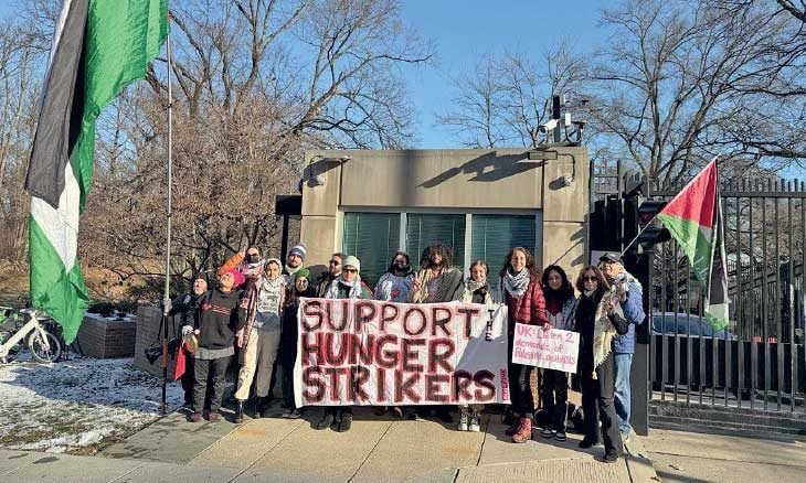 المسار: واشنطن – في العاصمة الأمريكية واشنطن، نظّم عدد من المنظمات الداعمة لفلسطين اعتصاماً احتجاجياً قرب السفارة البريطانية، أبدى فيه المشاركون تضامنهم مع المضربين عن الطعام في السجون البريطانية