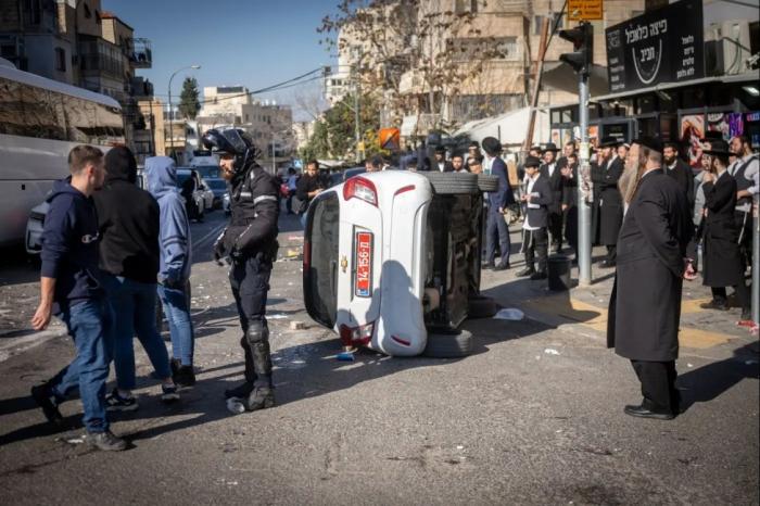 المسار : اندلعت مواجهات عنيفة، اليوم الخميس، بين قوات شرطة الاحتلال ومجموعات من المستوطنين “الحريديم” في القدس المحتلة، أسفرت عن إصابة 10 عناصر من شرطة الاحتلال، واعتقال أربعة مستوطنين، بالإضافة إلى إلحاق أضرار مادية بمركبات الشرطة.