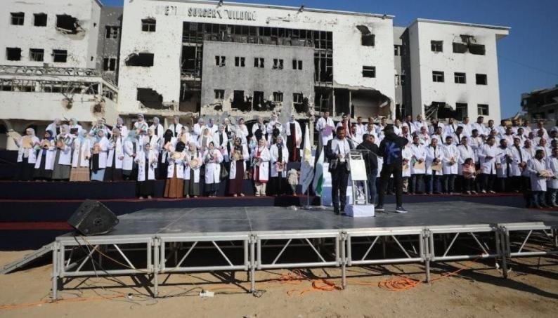 وأضاف المدير الطبي لمجمّع الشفاء، الدكتور محمد أبو سلمية، أن الاحتلال حاول تدمير الإنسان الفلسطيني باعتباره رأس المال الحقيقي، لكنه فشل، مؤكدًا أن الكوادر الطبية ستعيد بناء المستشفيات المدمرة.