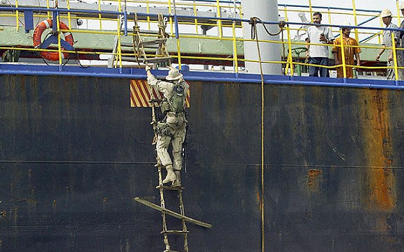 ونشرت القيادة الأميركية مقاطع مصورة تُظهر هبوط مروحية عسكرية على متن الناقلة، وعناصر أميركية تقوم بتمشيطها وتفتيش سطحها، في مشهد يعكس تصعيدًا واضحًا في العمليات البحرية الأميركية بالمنطقة.
