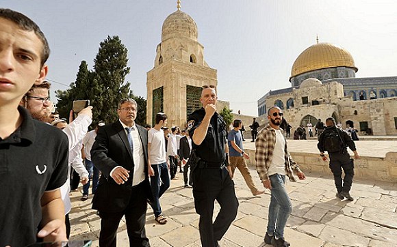 المسار :اقتحم وزير الأمن القومي الإسرائيلي المتطرّف إيتمار بن غفير، اليوم الثلاثاء، المسجد الأقصى في القدس المحتلة، خلال فترة اقتحامات المستوطنين، فيما واصل المستوطنون أداء صلوات يهودية داخل باحات المسجد، في انتهاك صارخ للحرمة الإسلامية والوضع التاريخي والقانوني القائم.