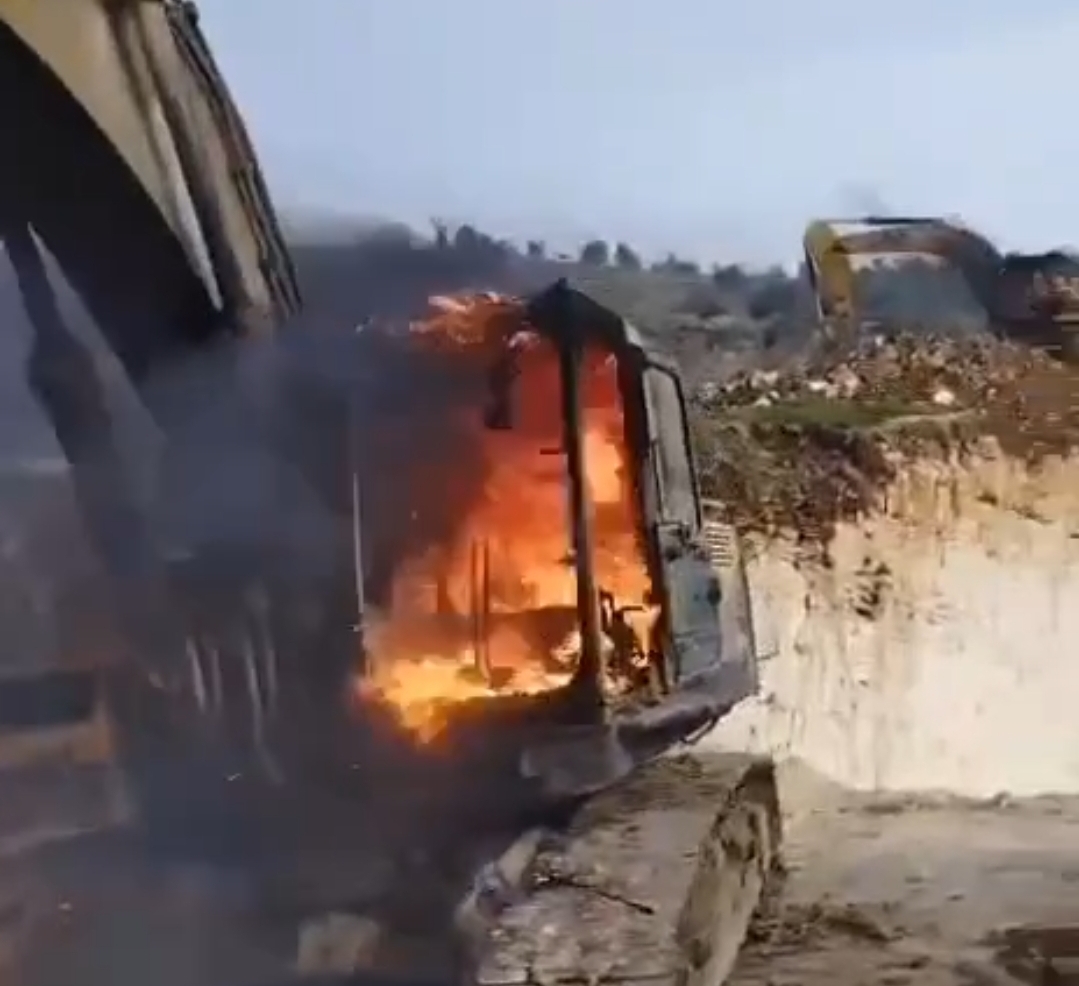 المسار :أقدم مستوطنون صباح اليوم الأربعاء 21 يناير 2026، على إحراق عدد من الآليات الثقيلة التابعة لكسارات عصام الصفدي في قرية عوريف جنوب مدينة نابلس.