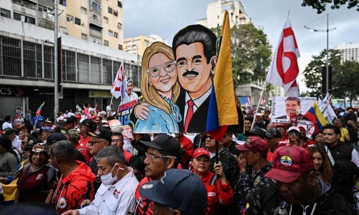 ورُفعت لافتة ضخمة قرب ساحة أولياري وسط كراكاس كُتب عليها “نريد عودتهما”، في إشارة إلى مادورو وزوجته سيليا فلوريس، وسط هتافات داعمة لهما.