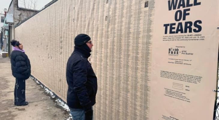 الجدارية، التي حملت اسم «جدار الدموع»، تمتد بطول 50 قدمًا، وتضم أسماء الأطفال الذين استُشهدوا بين 7 تشرين الأول/أكتوبر 2023 و19 تموز/يوليو 2025، مرتّبة زمنيًا وفق تاريخ الاستشهاد، في محاولة لتحويل الأرقام الصادمة إلى قصص إنسانية ملموسة.
