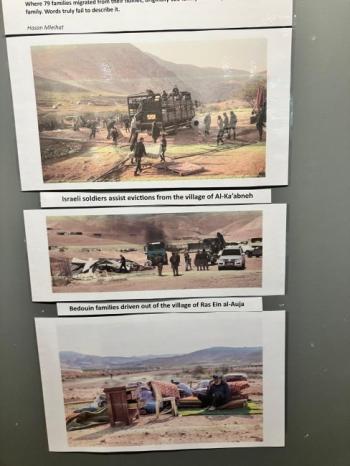 وضمّ المعرض أعمالًا فنية وتوثيقية قدّمت للزوار صورة حيّة عن الواقع الفلسطيني، من خلال صور فوتوغرافية ووثائق مصوّرة توثق تهجير البدو من أراضيهم وممارسات المصادرة القسرية، بما يعكس حجم المعاناة الإنسانية والاجتماعية التي يعيشها البدو الفلسطينين .