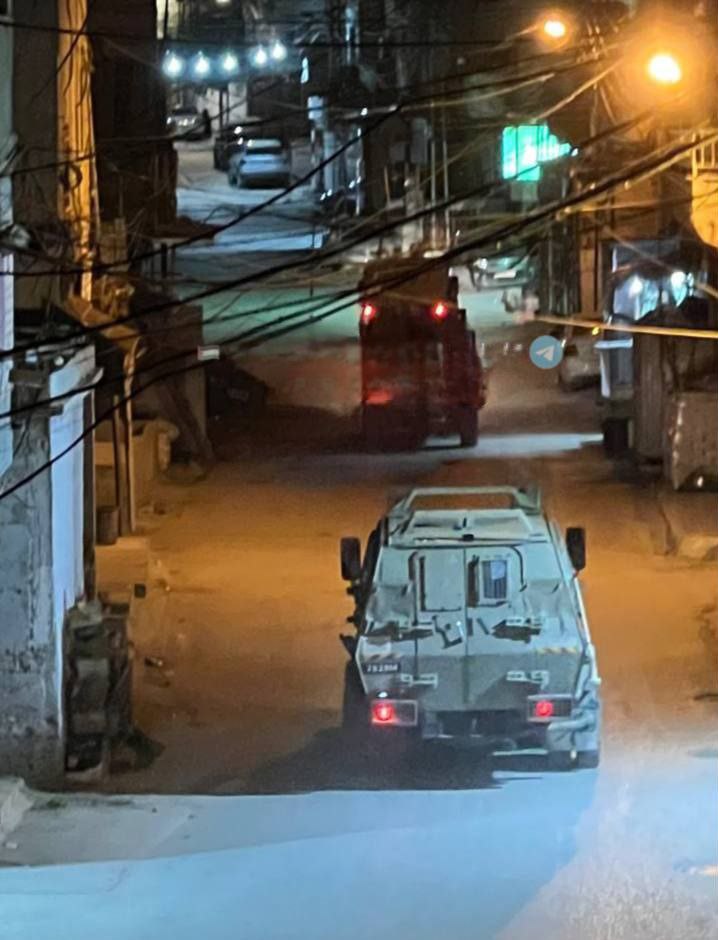 وفي نابلس، اقتحمت قوة راجلة أزقة مخيم عسكر القديم شرق المدينة، وسط تحركات مكثفة لآليات الاحتلال بين مخيمي عسكر القديم والجديد، مع تمركز عسكري في المنطقة. كما اقتحمت قوات الاحتلال المنطقة الغربية للمدينة عبر حاجز دير شرف، وداهمت بلدة دير شرف وبلدة بيت إيبا، حيث نفذت عمليات تفتيش لمنازل المواطنين.