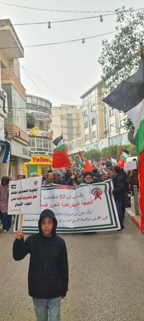 في الذكرى السابعة والخمسين لانطلاقة الجبهة الديمقراطية لتحرير فلسطين، نتوجه إليكم جميعًا باسم الجبهة بتحية فخر واعتزاز لشعبنا العظيم في قطاع غزة، الصامد المتمسك بحقوقه ووجوده على أرضه، تحية فخر واعتزاز للمقاومين الأبطال الذين سطروا أروع صفحات الصمود في مواجهة الاحتلال، وتحية إجلال لأرواح شهداء وشهيدات شعبنا على مدار مسيرة نضالنا الطويلة، بما في ذلك نحو 80 ألف شهيد في قطاع غزة، شهداء الوطن الذين ضحوا بحياتهم من أجل حريتنا وكرامتنا.