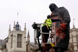 من جهتها، دانت رئاسة الوزراء البريطانية الفعل ووصفت التخريب بأنه “عار ومُشين للغاية”، مؤكدة أن الحكومة ستدافع دائمًا عن قيمها وستحاسب الجاني.