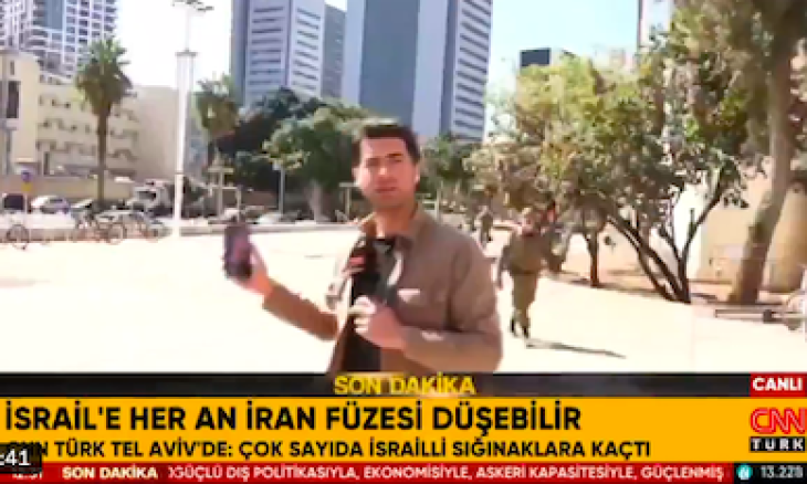 ونشرت “سي إن إن تورك” مقطع فيديو يظهر توقيف الصحافيين خلال بثهما المباشر من أمام مجمّع وزارة الدفاع الإسرائيلية.