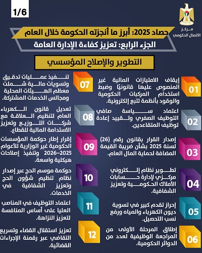 حصاد عام 2025 (الجزء الرابع): استمرار نهج الإصلاحات وضبط الإنفاق تحسين جودة الخدمات ورقمنتها وتعزيز الحوكمة