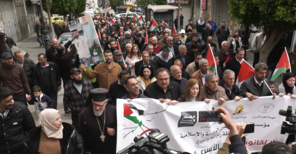 بدوره، أوضح عصام بكر القيادي في حزب الشعب ومنسق القوى الوطنية والإسلامية في محافظة رام الله والبيرة،  أن هذا القرار ينطوي على خطورة كبيرة نحن اليوم في هذه المسيرة، نؤكد التفافنا خلف قضية الأسرى باعتبارها قضية الضمير الإنساني، ونؤكد بأن الشعب الفلسطيني بكل أطيافه وفئاته يقف إلى جانب أسراه، ولن نترك الأسرى فريسة لهذا الاحتلال ولقرارات بن غفير.