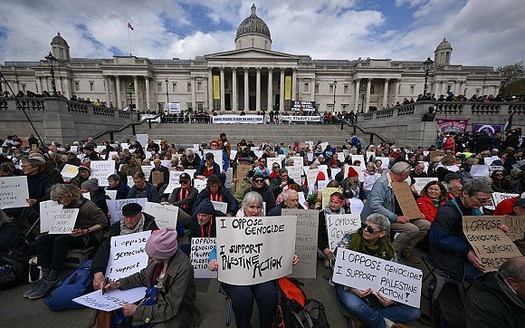 وشارك نحو 500 متظاهر في الاعتصام الذي أُقيم في ساحة “ترافالغار” الشهيرة، احتجاجًا على تصنيف الحراك كمنظمة محظورة، وفق ما نقلت وكالة Reuters وAssociated Press عبر تقارير ميدانية.