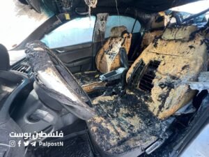 صور | آثار إحراق المركبات خلال هجوم للمستوطنين على قرية بيت إمرين شمال نابلس الليلة الماضية