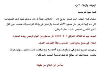 المسار : أعلن اتحاد العاملين المحليين في وكالة غوث وتشغيل اللاجئين الفلسطينيين…