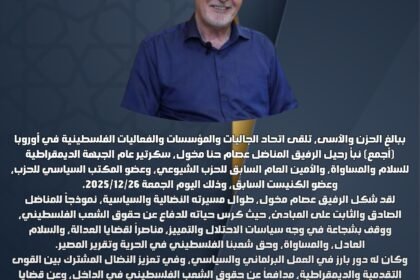 اتحاد الجاليات الفلسطينية في أوروبا ) اجمع ) ينعي المناضل التقدمي الكبير عصام مخول