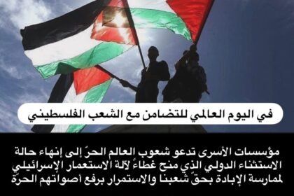 المسار :بيان صادر عن مؤسسات الأسرى في اليوم العالمي للتضامن مع الشعب…