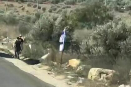 مستوطنون يثبتون أعلام الاحتلال على شارع 55 شرق قلقيلية