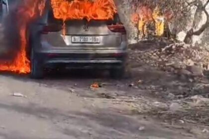 بالفيديو مستوطنون يحرقون 3 مركبات و”حفار” شرق قلقيلية