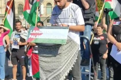 المسار : ألقى اتحاد الشباب الأوروبي الفلسطيني كلمة مؤيدة لفلسطين خلال التظاهرات…