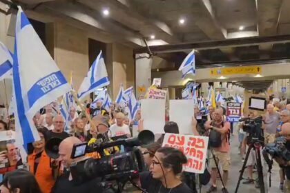 المسار : تجمع مئات المتظاهرين في قاعة الوصول بمطار بن غوريون، مساء…
