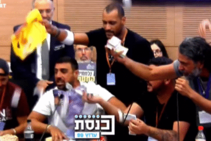 المسار : عرض جنود إسرائيليون خلال جلسة للجنة برلمانية في الكنيست، أكواماً…