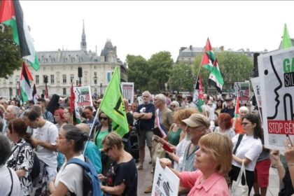 بالأواني وأكياس الطحين.. محتجون بباريس يطالبون بإنهاء تجويع غزة